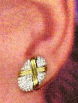 One earring is shown on a human size ear image for proportion. Click image to view closeup of both earrings. All earrings are clip unless otherwise noted in the description.