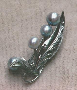 ![]() Four Gray Baroque Simulated Pearls on Silver Brooch |