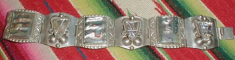 ![]() Bracelet, Mexican Sterling with Carved Abalone |