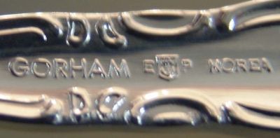 A similar version was made in 1994 in Korea for Gorham, also called French Scroll. It is marked with the backstamp Gorham KOREA, like this. This version is not offered here.